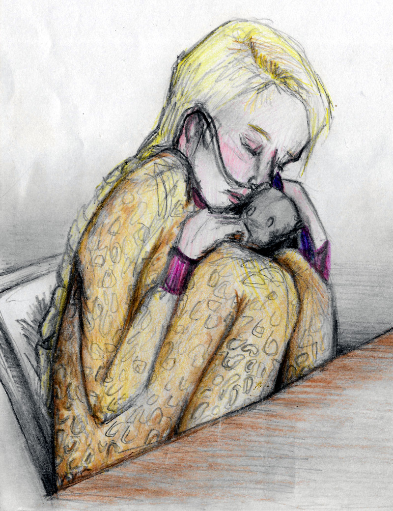 Zij. Ze heeft een huid zo zacht als zijde, en mooi licht van kleur. Haar lange haren die tot aan haar smalle heupen reiken, met prachtige krullen, zo blond als bij elkaar geveegde zonnestralen. Een meisje dat altijd een meisje blijft, en oogverblindend straalt. Mooier dan de schoonheid van welke godin dan ook.